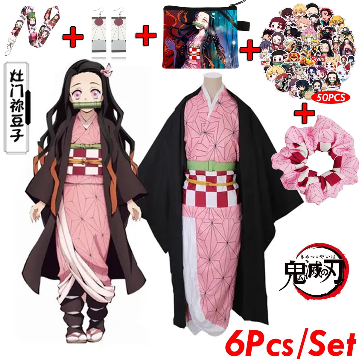 6 Piece Kit Cosplay Costume Anime Kamado Nezuko Kimono Walmart Com